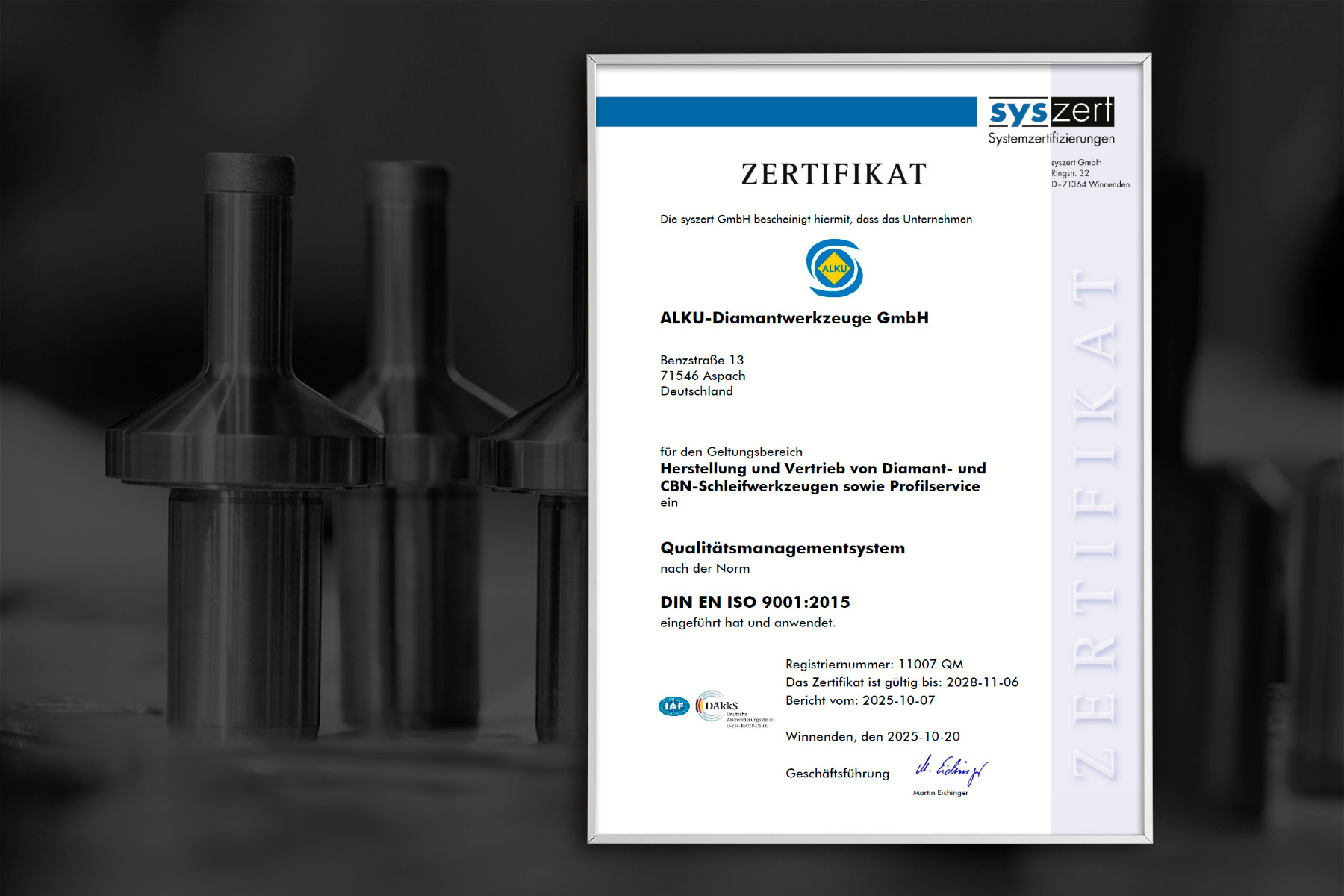 Qualität war bei ALKU in Eigenverantwortung schon vor der Anwendung von QS-Systemen unser allerhöchster Anspruch. Die erfolgreiche Rezertifizierung nach ISO 9001/2015 in 2022 ist ein Zeichen unseres hohen Qualitätsniveaus.